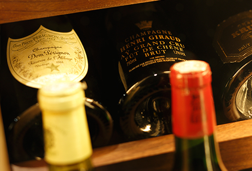 クラシカルで重厚な店内に相応しい、優雅で気品あふれるヴィンテージ・シャンパーニュや、ボルドー、ブルゴーニュのグラン・ヴァンなどフランスワインを豊富に取り揃えております。